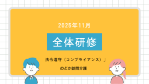 2025年11月12日 【研修報告】法令遵守を“現場の事例”から考える 〜迷ったときどうする?〜 11月のヘルパーミーティングでは 「法令遵守(コンプライアンス)」 をテーマに、現場で実際に起こり得るケースをもとに意見交 […]